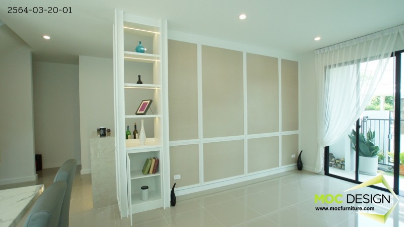 3. ชุดกรุผนัง+ตู้โชว์ ขนาด 3.44 x 2.76 m. / 0.70 x 2.76 m. วัสดุ HMR เมลามีน สี 5618-07 ตัดสี White 101-01