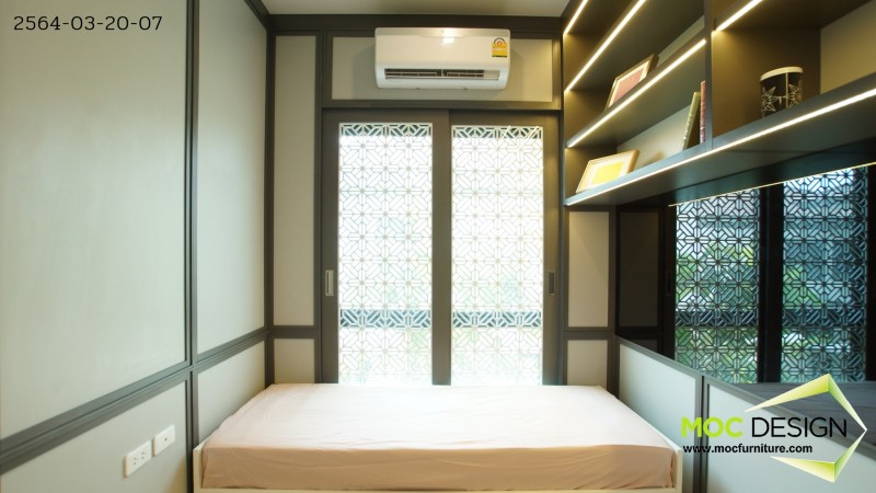 8. กรุผนังบานเลื่อนสไลด์ ขนาด 2.09 x 2.89 m. วัสดุ HMR เมลามีน สี Grey 3258-07 ตัดสี 7651-01 ฉลุไม้ Cut37