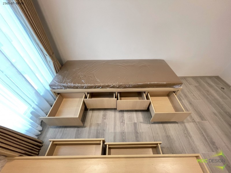 11. ชุดโซฟาเบด ขนาด 2.10 x 0.50 m. วัสดุ HMR เมลามีน สี OAK 1169-02 PU743