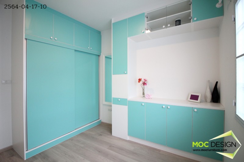 9. ตู้เสื้อผ้า ขนาด 2.00 x 2.60 m. วัสดุ MDF เมลามีน สี 873-02 ตัดสี 3325-02