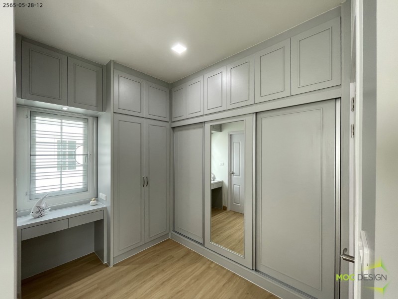 13. ชุดตู้เสื้อผ้า L  ขนาด1.55+2.30 x 2.70 m. วัสดุHMR เมลามีน สี Grey 3258-01