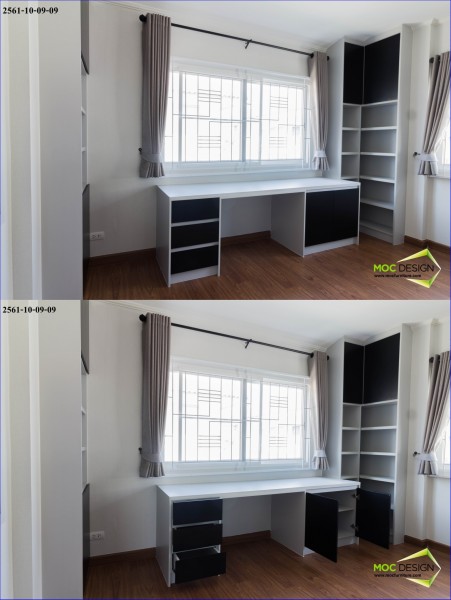 9. ตู้หนังสือ ขนาด 2.55 x 2.64 m. วัสดุ MDF เมลามีน สี ดำ ตัด สี Gray 3258-01