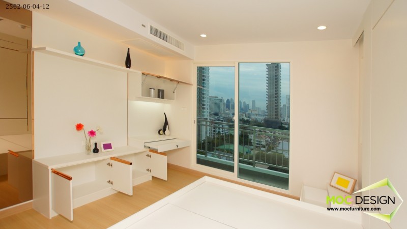 8. ตู้เสื้อผ้า+โต๊ะแป้ง ขนาด 2.20 x 2.69 m. วัสดุ MDF เมลามีน สี White 101-01 กระจกเงาทอง