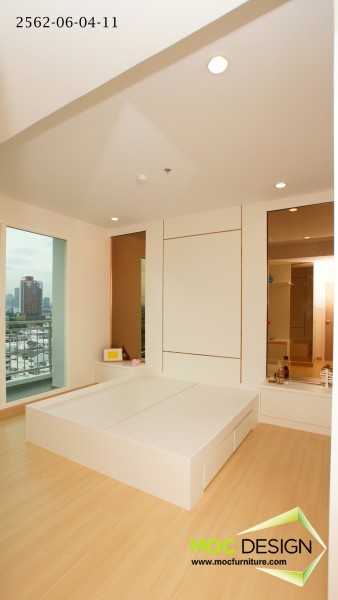 9. เตียงนอน+กรุผนัง ขนาด 3.50 x 2.34 m. วัสดุ MDF เมลามีน สี White 101-01 กระจกเงาทอง กรุยเชิงสีพิงค์โกล
