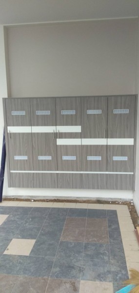 13. ตู้รองเท้าหน้าบ้าน ขนาด 1.20 x 0.30 m. วัสดุไม้พลาสวู๊ด สีขาว ภายนอกปิดผิวลามิเนตลายไม้