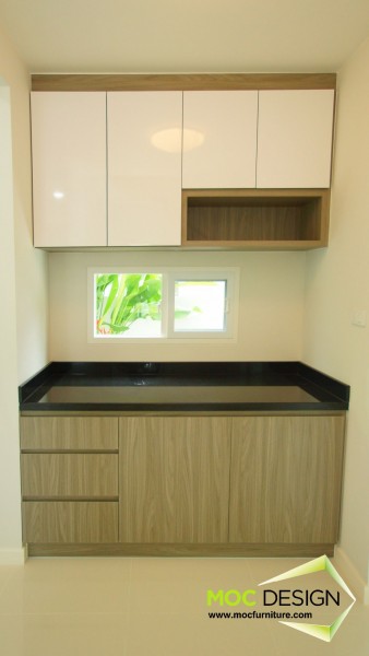 2. ชุดครัวตัว L ขนาด 2.43 + 2.08 m. วัสดุ MDF เมลามีน สี Ladinia 873-02