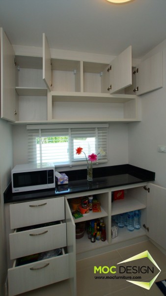 2. ชุดครัวตัว L ขนาด 1.30 + 1.74 x 2.60 m. วัสดุ MDF เมลามีน สี Ladinia 873-02 ท็อปหินแกรนิตดำซุปเปอร์แบล็ค