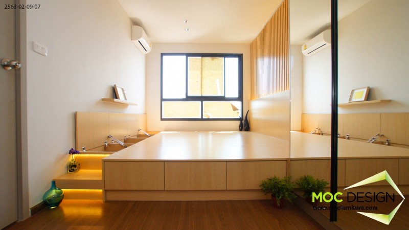 2. เตียงพร้อมกรุผนังหัวเตียง ขนาด 3.06 x 2.43 m.วัสดุ MDF เมลามีน สี Oak 1169-02