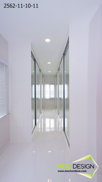 2. ตู้เสื้อผ้า ขนาด 5.49 x 2.75 x 0.60 m. วัสดุ MDF เมลามีน สี White 101-01 หน้าบานกระจกเงา บานเฟรมอลูมิเนียมสีอะโนไดซ์