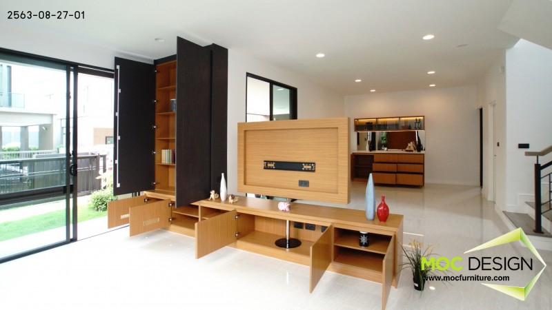 1. ชุดวางทีวี ขนาด 3.60 x 2.70 m. วัสดุ HMR เมลามีน สี Teak 12523-02 ตัดสี Graphite 3200-02