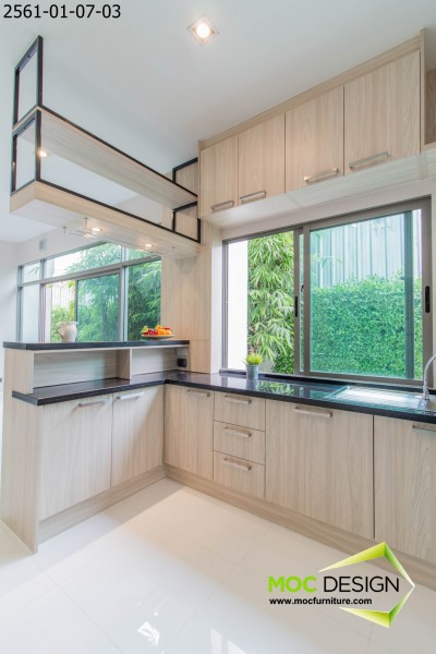 2. เคาท์เตอร์ไอแลนด์ ขนาด 1.4 + 2.29 m. วัสดุ MDF เมลามีน สี 5345 ท๊อปหินแกรนิตดำเกล็ดทอง