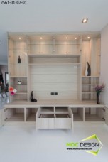 1. ชั้นวางทีวี ขนาด 2.87 x 2.80 m. วัสดุ MDF เมลามีน สี 5345 หน้าบานกระจกใส