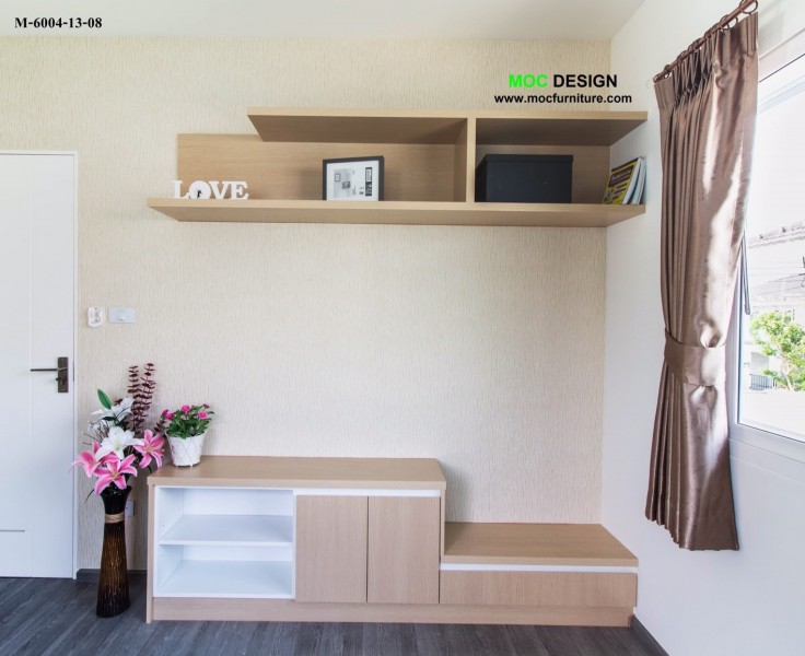 7. ชั้นวางทีวี ขนาด 2.00 m. วัสดุ MDF เมลามีน สี White 101 ตัดสี Ash 12180