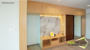 1. ชุดวางทีวี ขนาด 2.17 x 2.38 m.วัสดุ MDF เมลามีน สี Oak 1169-02 ตัดสี 615-02