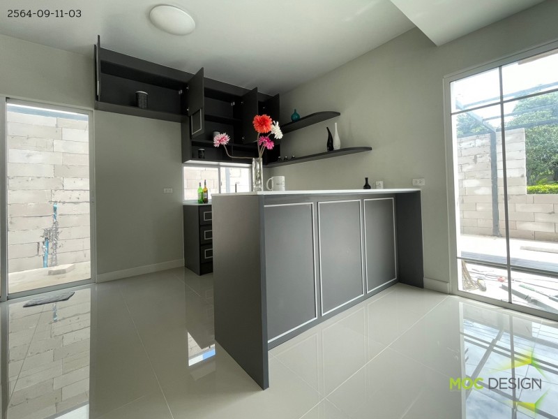 3.ชุดครัวตัว U ขนาด 1.58+1.73 + 2.00 x 2.66 m. วัสดุ HMR เมลามีน สี Grey 7651-01 ตัดสี Grey 3258-01 ท๊อปหินเทียมคริสตัลไวท์