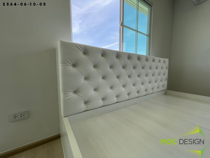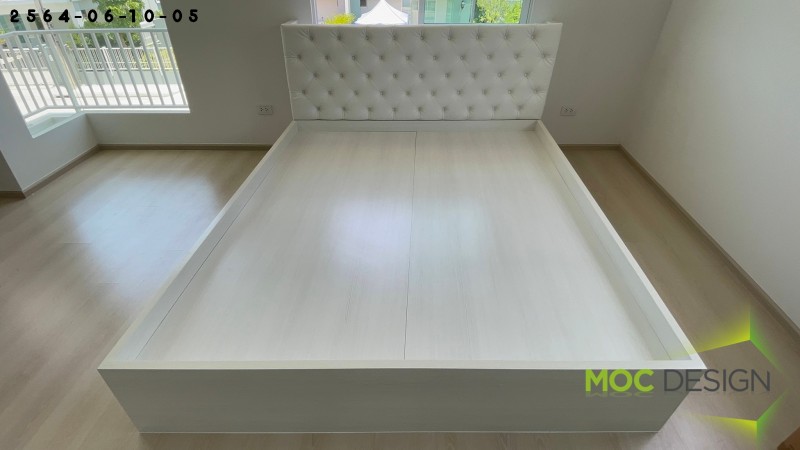 5. เตียงนอน 6 ฟุต ขนาด 1.87 x 2.00 x 0.90 m. วัสดุ HMR เมลามีน สี Ladinia 873-02 เบาะ PU สีขาว