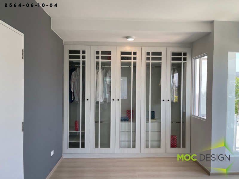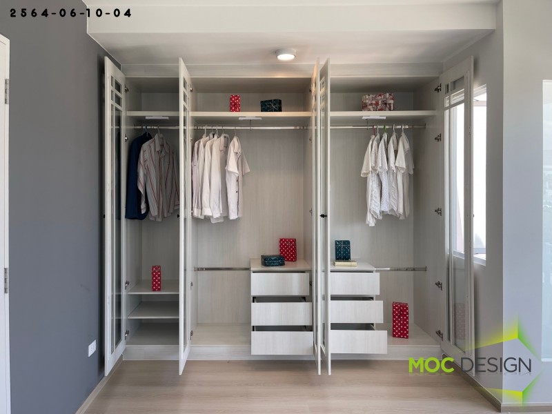 4. ตู้เสื้อผ้า ขนาด 2.63 x 2.40 m. วัสดุ HMR เมลามีน สี Ladinia 873-02 บานกระจกใส